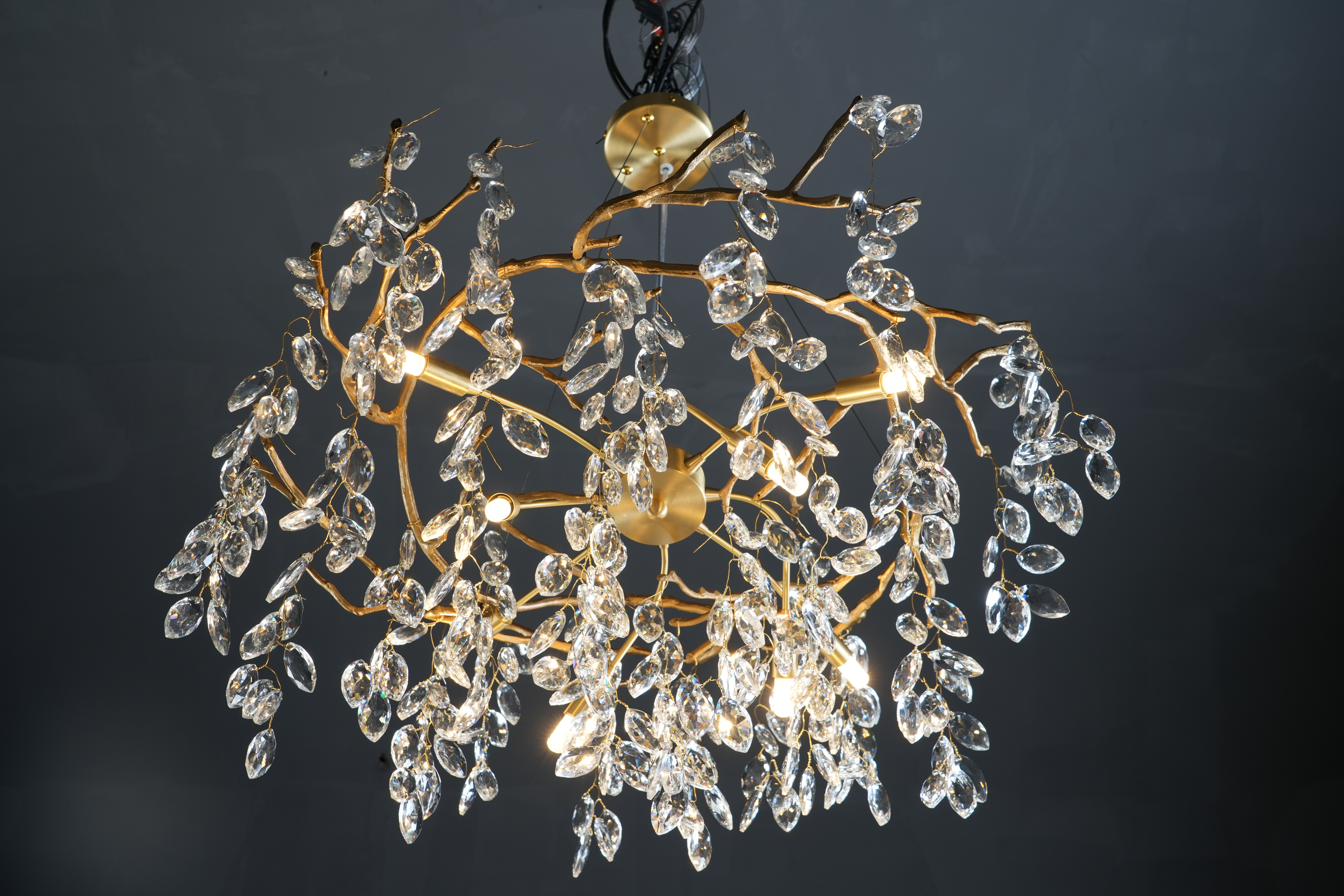 French crystal chandelier for living room,Leaf branch duplex chandelier light,Round villa pendant chandelier with warranty